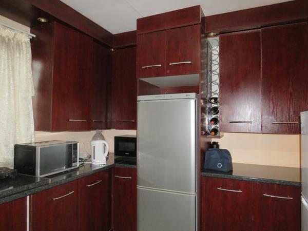 Discover a versatile residential property located in the suburban heart of Madeira Park, Queenstown, offering a unique opportunity for comfortable living or investment. This expansive 643 sqm erf features two distinct residential structures, providing flexibility for dual living, extended family, or potential rental income. The main residence presents a functional layout, including a well-appointed kitchen boasting extensive dark wood cabinetry, dark granite-look countertops and an integrated wine rack, ensuring ample storage and a contemporary feel. The property includes one lounge area, perfect for relaxation and entertainment.