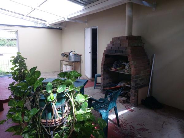 The house consists of entrance hall, sunny lounge, dining room leading to outside patio, which has an enclosed entertainment area with bi braai. Fitted kitchen with built in cupboards. Three bedrooms, study and bathroom. Garage and double carport, this home is fully walled and alarmed.
