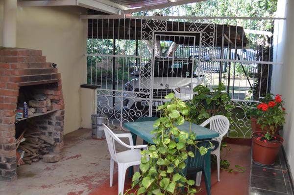 Entertain effortlessly under the covered patio with a built-in braai a perfect spot for gatherings, no matter the weather. The garden is neatly fenced with palisades, enhancing the property''s security alongside a reliable alarm system for added peace of mind.