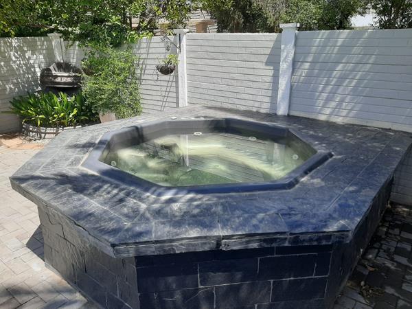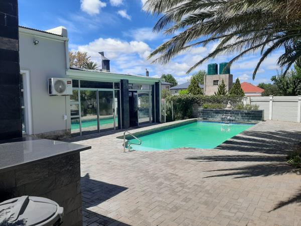 Property consist of 3 x spacious bedrooms with newly fitted wardrobes , lounge with added TV lounge option , dining room , modern kitchen , 2 x modern bathrooms which include an ensuite , study , domestic quarters , laundry ,garage , carport for 4 x vehicles , modern entertainment area with fitted bar , build in braai overlooking sparkling swimming pool with braai area and jacuzzi .