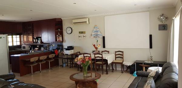 Open plan Kitchen/lounge/dining room. There are 6 around home and property with screen in main bedroom.