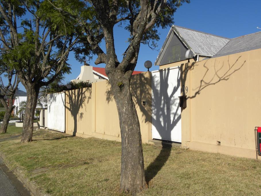 On the front boundary the property is secured with a high wall with an automatic security gate which gives access to the garage and back of the property. Burglar bars and alarm system.