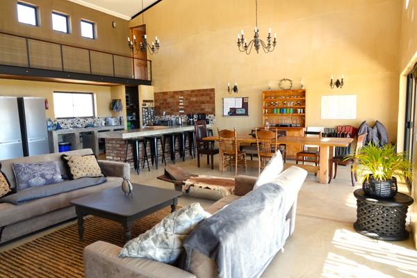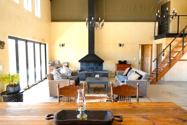 A large up-market lodge offers accommodation for 10 people in 2 en-suite bedrooms and a sizeable en-suite bedroom for six. A spacious open-plan lounge with fireplace, dining room, kitchen, guest bathroom and undercover veranda with built-in braai creates the perfect entertaining area. Presently the lodge is frequented by visitors touring the Baviaanskloof, group adventures and family holidays.