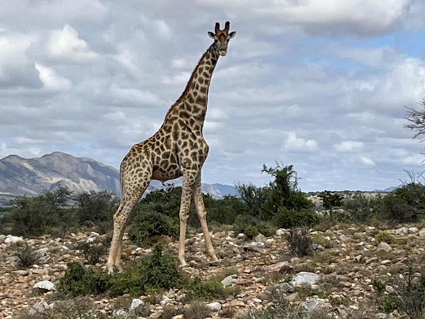 The landscape is varied, and the topography includes rugged mountains with deep, plunging cliffs, ridges at the foothills and more rounded hills, valleys and deep ravines and plains. Dry rivers that flow only in the rainy season, traverse the farm. This diverse landscape, covered in riverine thickets, and Karoo and fynbos biomes, supports a diversity of vegetation that in turn supports a wide variety of animal life. The vegetation includes patches of shrubs, bushes with denser riverine thicket and many mature trees along the banks of the dry rivers. This balanced, diverse habitat ensures a perfect balance in naturally available food for both browsers and grazers. Hundreds of the beautiful Shepherd or Motopie trees (Boscia albitrunca), also known as Witgat grow here. With its various shapes and sizes, and attractive dense, round or spreading crown, Shepherd trees thrive in this dry climate.