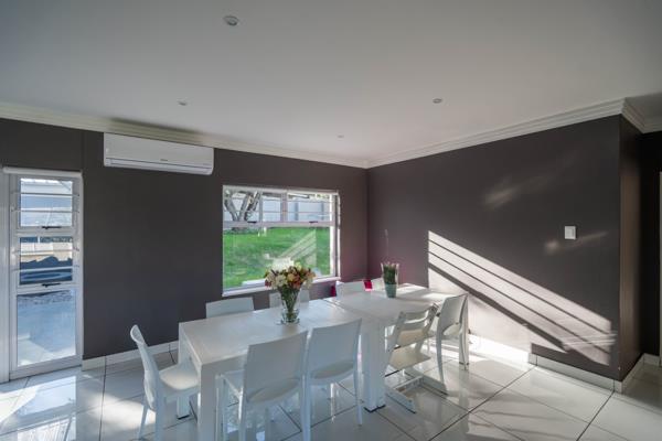 A dedicated study provides the perfect work-from-home solution. Outdoor living is a highlight, with a covered braai and firepit zone, a second sheltered patio, and an enclosed garden with mature trees ideal for kids, pets, and weekend entertaining. Additional features include aluminium windows, tiled and vinyl flooring, a prepaid electricity meter, two water tanks with a pressure pump, and secure off-street parking behind perimeter walling.