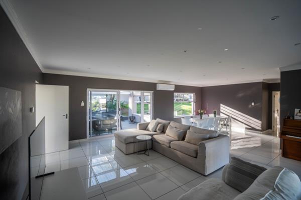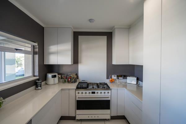 The main bedroom features an en-suite bathroom, while both additional bedrooms are spacious and serviced by a second well-appointed bathroom. The heart of the home is a light-filled, open-plan lounge and dining area that flows into a stylish modern kitchen, complete with ample counter space and a breakfast nook ideal for entertaining or relaxed family meals.