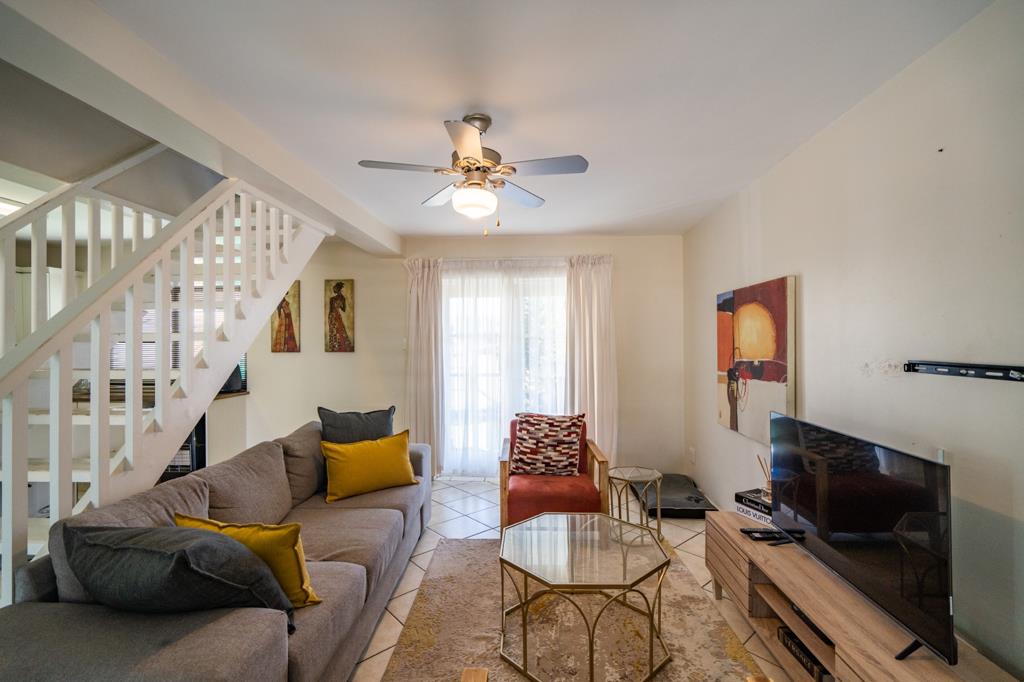 This is a secure, gated complex with 24 hour security. It comprises of: Two double bedrooms, both bedrooms have ensuite bathrooms with air conditioners and built-in wardrobes. Downstairs is open plan with a modern kitchen with an under counter oven and hob with extractor fan - opens onto a spacious lounge andamp guest toilet. Each unit also has a covered patio with small garden pet friendly and double open carport. This complex is extremely popular with post graduates, young working couples and used for the perfect lock up and go''s.