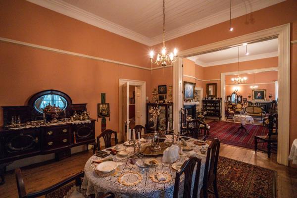 Set on 9306m2 of land, the house stands elevated amidst majestic old trees and is graced with a grand roof with towering chimneys. The house is one of grand proportions with large double-volume rooms. It has three beautiful reception rooms, in which many balls have been held throughout its history, the last taking place in 1986. This was a Victorian Ball held as a fundraiser for the Diocesan School for Girls.