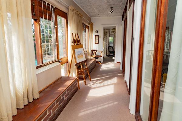 From the lounge, double doors open onto a sheltered braai area and garden, creating a seamless indoor-outdoor flow ideal for summer gatherings. The large pool lies privately in a sun-filled courtyard perfect for cooling off on hot days while still leaving plenty of space for children or pets to roam.