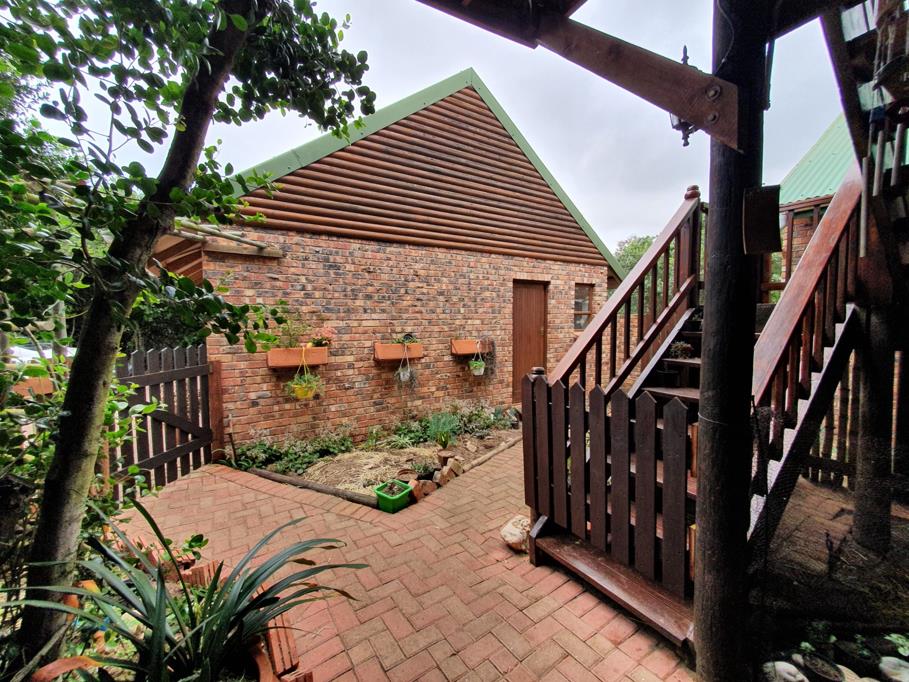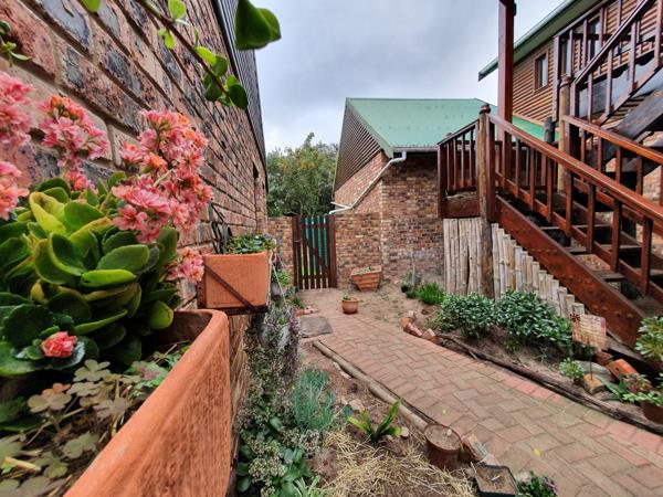 This lovely East facing property is located in phase two on a 700 square meter erf. The home is clad with half logs on the exterior and knotty pine on the inside, creating a warm cabin feel throughout.
