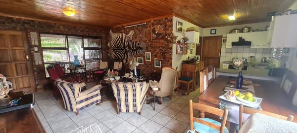 Under roof tiled stoep, open lounge and dining room with fitted kitchen (stove, oven and hob).