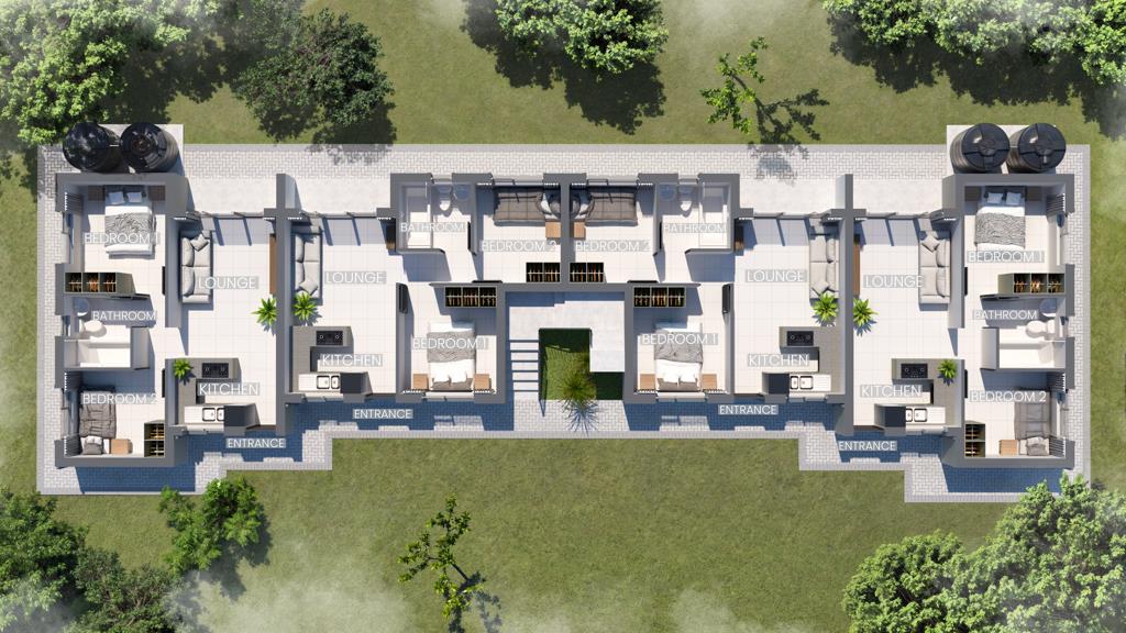 Water tank. 2 Parking bays. Lovely clean finishers, tiles, and built-in cupboards. Choose from a ground-floor or first-floor apartment.