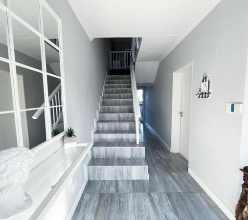 Enter directly into the garage with convenient access into the unit. A passageway leads to a guest toilet and storage space, culminating in a private, sheltered patio and braai area surrounded by its own little gardenperfect for private entertainment. The garage features sliding doors that open to the back garden, offering versatile use beyond parking.