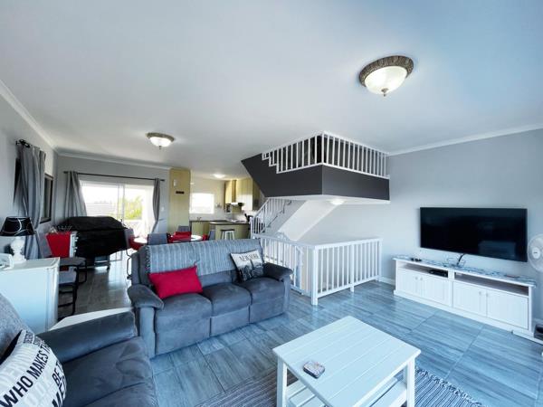 The open-plan layout seamlessly combines the kitchen, lounge (with sea views), and a delightful braai room. Enjoy the fresh ocean breeze, the sound of crashing waves, and the vibrant holiday atmosphere from this inviting space.