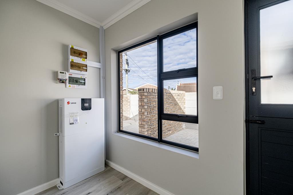 Each apartment is equipped for modern living with a 26-litre polymer gas geyser, a 3.5 kVA inverter paired with a 5.1 kWh lithium battery, and solar panels, providing a comprehensive off-grid solution. To ensure a reliable water supply, a 1000-litre slimline JoJo water tank is installed, complete with a 37 kW pressure control pump. The kitchens are designed with both style and functionality in mind, featuring sleek quartz countertops, aluminum kick plates, a gas stove, an electric oven, and ample space for a large fridge and dishwasher. The bathrooms also showcase elegant quartz countertops, adding a touch of sophistication.