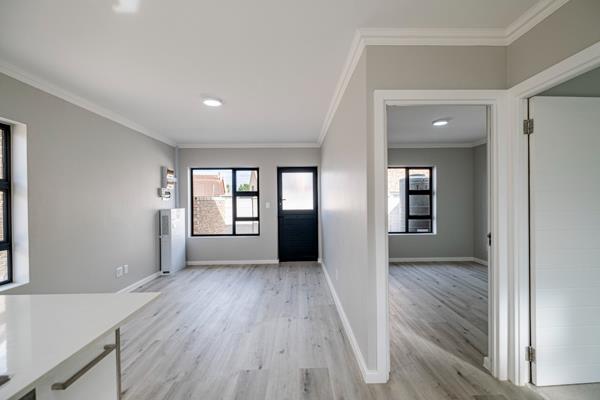Newly built, furnished 1-bedroom townhouse featuring a comfortable living room, modern kitchen, bathroom with both bath and shower, single garage, and a private courtyard with an attached water tank and solar panel system to provide support during load shedding.