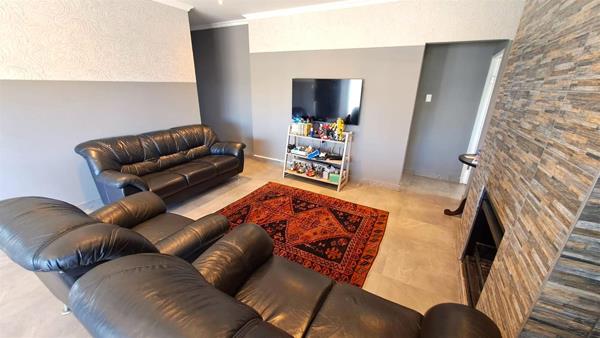 The main bedroom features a stylish en-suite bathroom, providing comfort and privacy, while the additional bedrooms are well-sized and filled with natural light. A spacious lounge with a cozy fireplace creates the perfect setting for family living and entertaining, seamlessly connecting to a modern kitchen equipped with ample cabinetry and contemporary finishes.