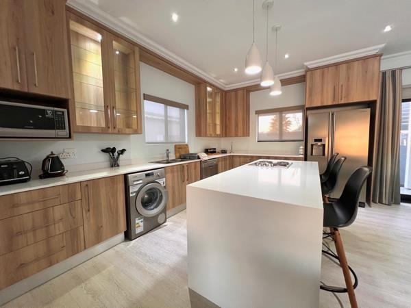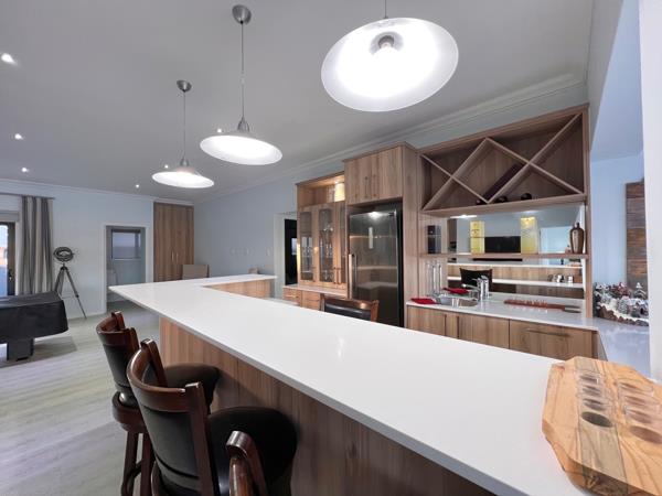 The first house features two bedrooms and two bathrooms, along with a guest toilet. The spacious open-plan living area includes a bar area, perfect for entertaining guests. There is also an enclosed patio and a braai (barbecue) area, allowing you to enjoy the outdoors regardless of the weather. Additionally, the house offers a double garage and a pool, adding to the overall appeal and enjoyment of the property.