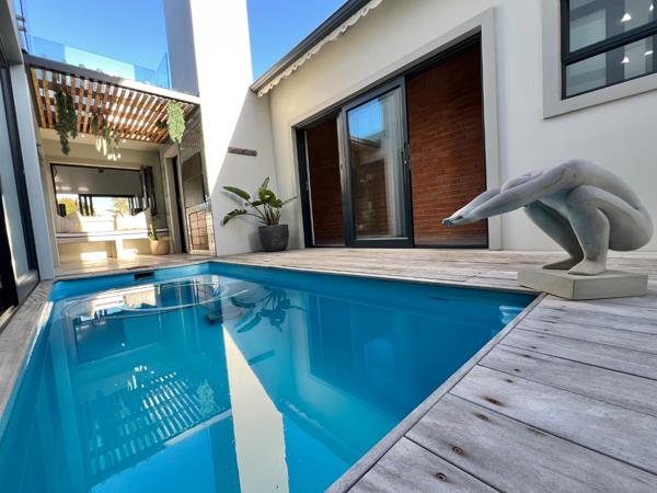 Step outside, and the true magic unfolds. A sprawling 100-square-meter deck offers uninterrupted views of the shimmering canalideal for sipping your morning coffee or enjoying sundowners as the water catches the last light of day. The private courtyard is an entertainers dream, featuring a built-in undercover braai and a sparkling heated pool with elegant cocktail steps. Large sliding doors surround the area, creating a seamless flow between indoor comfort and outdoor bliss.