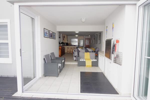 Nestled right on the water, this home invites you to relax on a sun-soaked deck and soak in the breathtaking views. The indoor braai area features stack doors that open to the deck and water, complete with a stainless steel built-in braai for effortless entertaining.