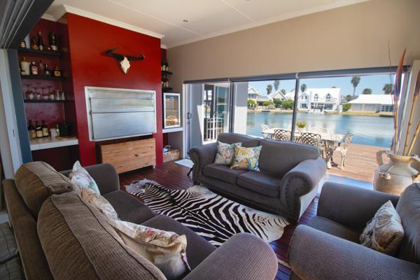 This stunning freehold waterfront home for sale in Marina Martinique, Jeffreys Bay offers the ultimate canal-front lifestyle with its modern open-plan design and private jetty access.