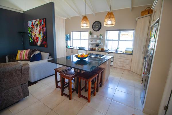 The stylish open-plan living areas connect the modern kitchen, dining, and lounge spaces, creating a seamless indoor-outdoor flow. A covered built-in braai area with serene water views makes this the ideal entertainers home for year-round enjoyment.