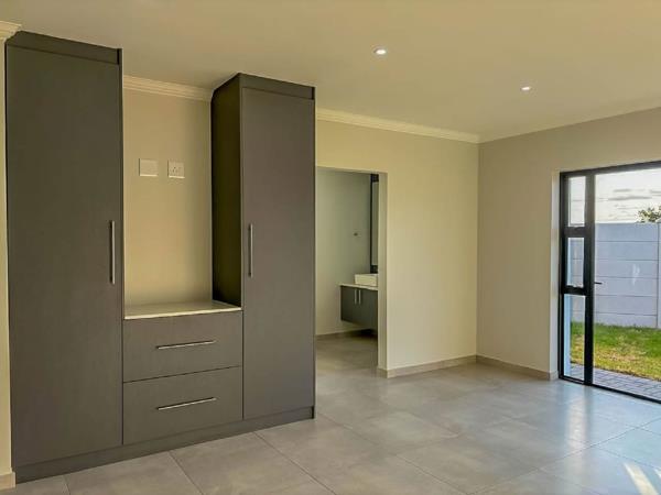 Neat and modern 3-bedroom, 2-bathroom home with a main bedroom en-suite. Open-plan kitchen and living area with a sliding door, plus a great outside braai spot.