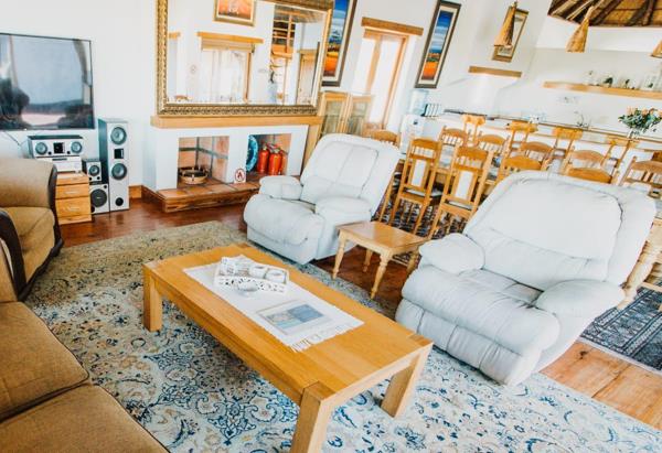 Step inside and feel the warmth of this beautifully maintained beach house, where the thatched roof, exposed wooden beams, and handcrafted finishes create a welcoming, lodge-style atmosphere. The open-plan living, dining, and kitchen areas flow seamlessly onto an entertainment patio with a sparkling pool a ideal for relaxed gatherings or soaking up the sun. The generous loft space overlooks the living area and features windows framing lovely views of the nearby greenbelt, bringing the outdoors in.