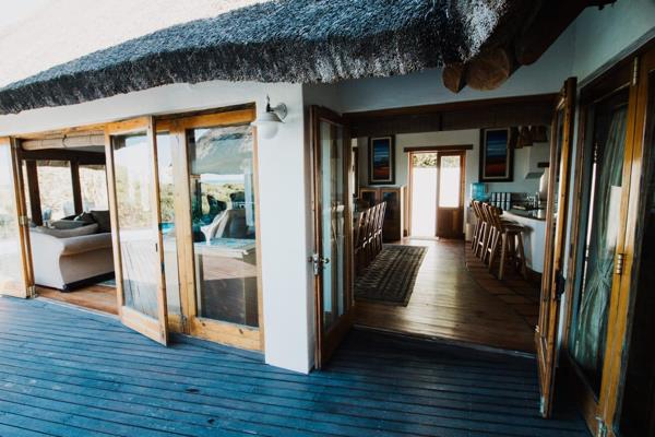 * Thatched roof & exposed beams for lodge-style appeal