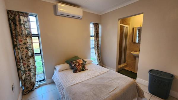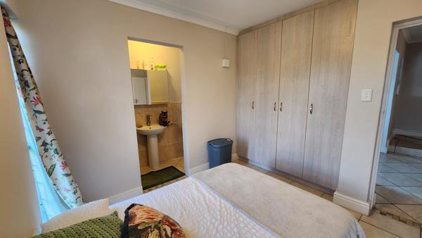 The main bedroom is located downstairs and boasts its own en-suite bathroom with shower, toilet, and basin. What was once a garage has been thoughtfully converted into a storage room. Upstairs, two additional bedrooms with built-in cupboards share a second bathroom fitted with a bath, toilet, and basin.