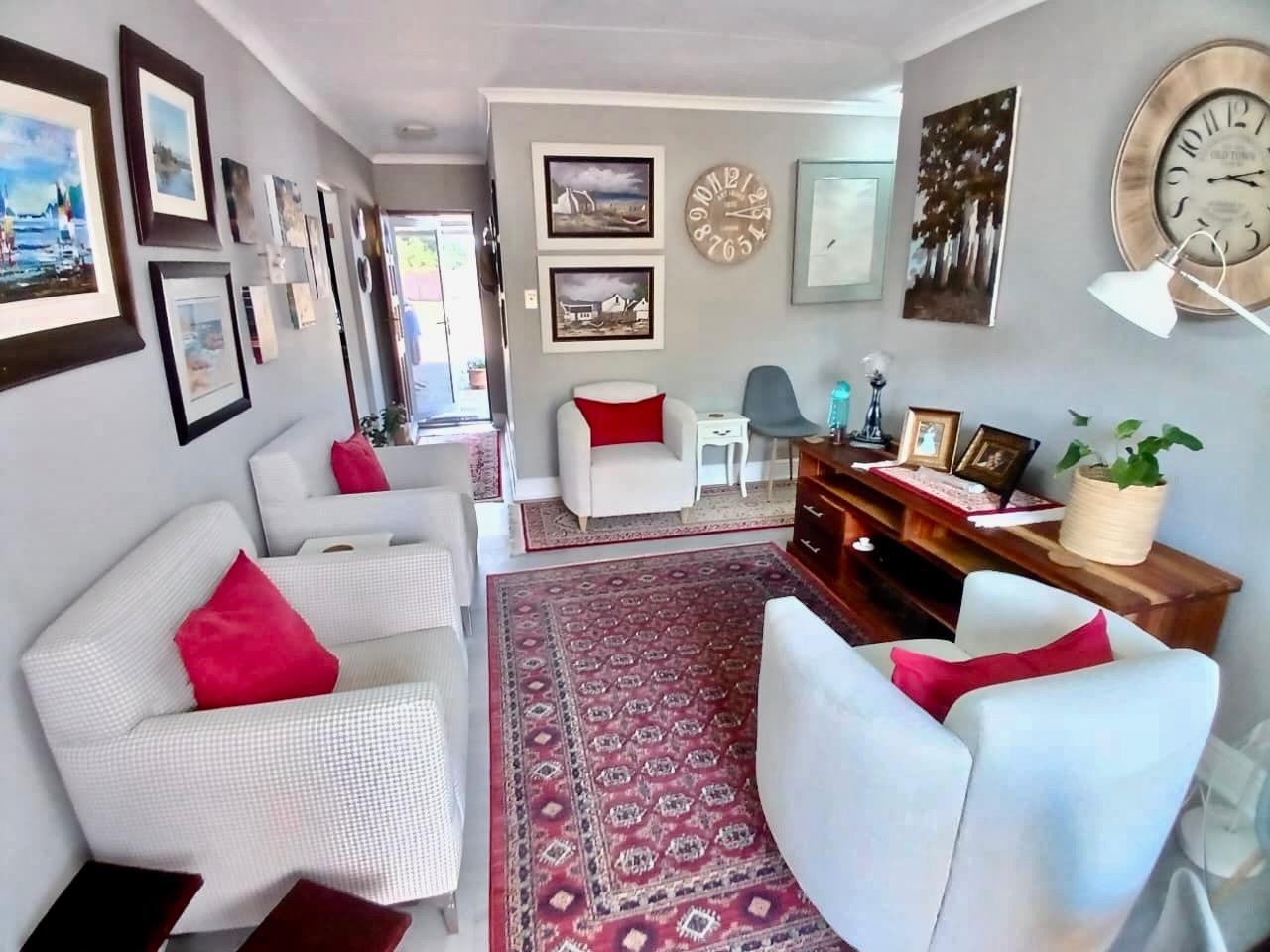 Discover modern coastal living in this inviting 91 sqm home, perfectly situated in the desirable Paradise Beach suburb of Jeffreys Bay. The interior boasts a bright and tastefully decorated open-plan living and dining area, featuring neutral grey walls, stylish furnishings, and warm accents from patterned rugs and a wooden media console. The contemporary kitchen is a highlight, equipped with a modern built-in oven and hob, ample white cabinetry, sleek dark granite countertops, and an integrated breakfast bardining nook, creating a seamless flow for daily living and entertaining.