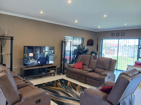 Step inside to a spacious, light-filled open-plan living area that seamlessly connects the modern kitchen, built-in braai area, and a lovely entertainment space. Stacking doors open out to a paved patioideal for easy indoor-outdoor living and entertaining.