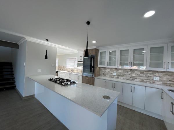As you step inside the ground floor, you''re welcomed by a generous open-plan lounge and dining area that seamlessly extends onto a wrap-around undercover balcony --perfect for entertaining. The balcony features a prep bowl and a built-in braai, all while taking in sweeping sea views. The heart of the home is a stunning modern kitchen, complete with sleek quartz countertops, two pop-up electrical units, a built-in gas hob, two electric ovens, a prep bowl, and a pantry cupboard. There''s ample space for a large fridge, and to top it off, the home comes equipped with a brand-new high-end dishwasher and fridge. A separate scullery provides connections for a dishwasher, keeping the main kitchen area clutter-free.