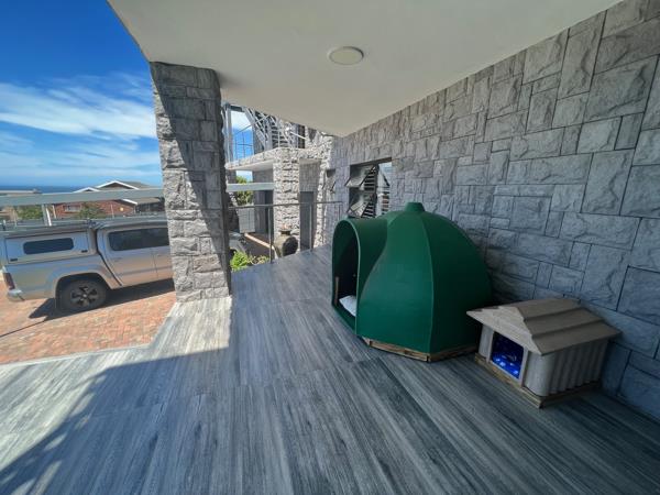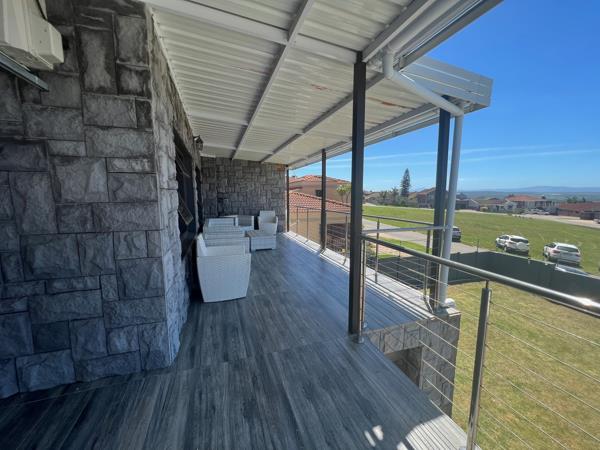 This spacious 4 bedroom house offers 4 bathrooms, all on second floor as well as TV room and lounge with a great seaview. Downstairs is a large lounge with a guest toilet as well as an open plan kitchen and dining room with separate scullery and washing facilities. A covered deck with braai area, ideal for entertainment. There is a double garage with with electric doors and double carport. There are 2 large water tanks 17,000 L.