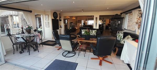 This living area has a built in braai, bar with stunning sea and lagoon view, 2 family bedrooms, family bathroom and main bedroom with en-suite bathroom. The main bedroom has stacker doors that open onto a wide covered balcony. Lie in bed and take in the view!.
