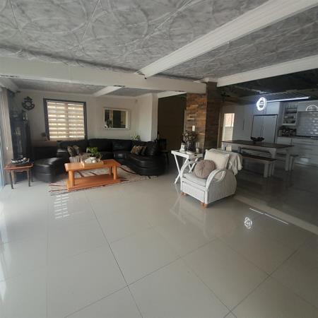Beautiful big floor tiles, open trusses, big modern open plan kitchen with dining room / lounge, long separate scullery with laundry,