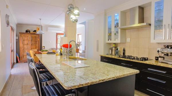 oOpen plan kitchen with lovely features granite counter tops, centre island with breakfast nook and prep-bowl, gas hob, eye-level oven and separate laundry