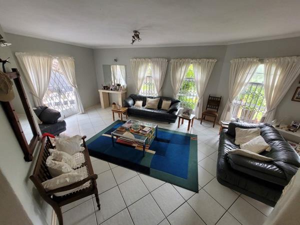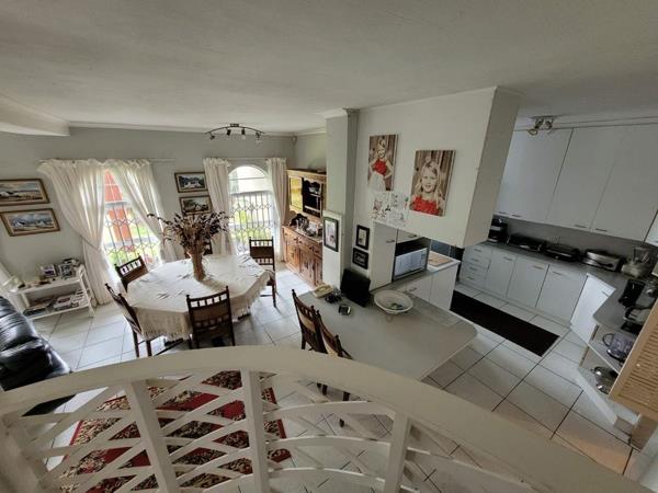 You will find the main bedroom with en-suite bathroom in the mid-section, as well as 2 guest bedrooms and a guest bathroom. 2 Of the bedrooms have doors leading to the lovely covered patio with garden, park and distant sea views. There are stairs from the patio to garden where there is a braai area with built-in braai.