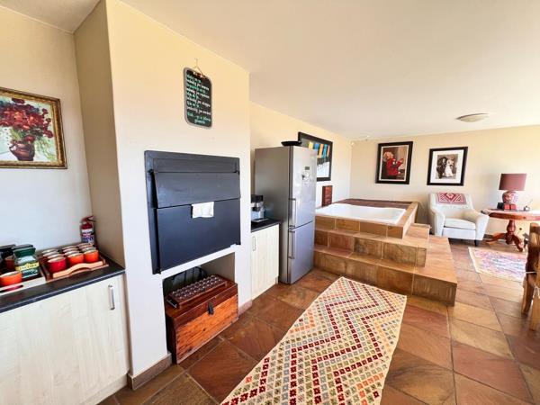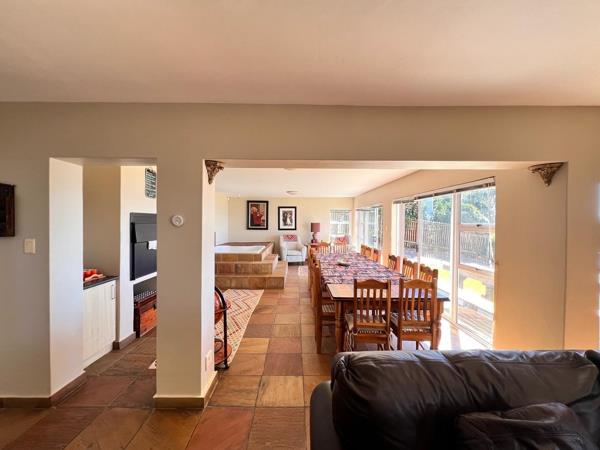 A spacious dining and braai area designed for entertaining, featuring a six-seater jacuzzithe perfect spot to relax while soaking in the ocean vistas.