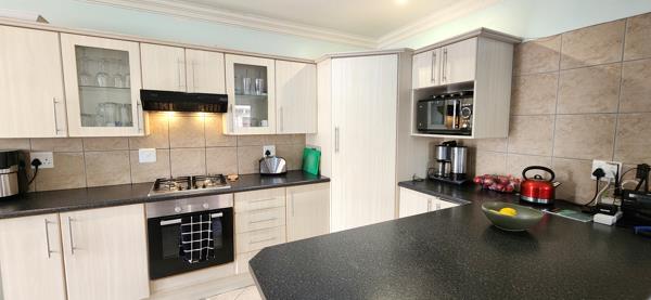As you enter, you''re welcomed by an open plan dining & lounge area. This inviting space flows seamlessly out to a tiled patioan ideal setting for entertaining guests or simply relaxing in the sun. The open-plan kitchen is both modern and practical, fitted with ample built-in cupboards, a built-in gas stove with an extractor fan, and a scullery plumbed for both a dishwasher and washing machine. The kitchen flows effortlessly into the TV lounge, creating a harmonious layout perfect for family living.