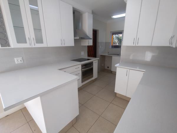 Well-appointed open-plan kitchen with ample cupboard space, breakfast nook, electric hob, under-counter oven, scullery, and plumbing for a washing machine