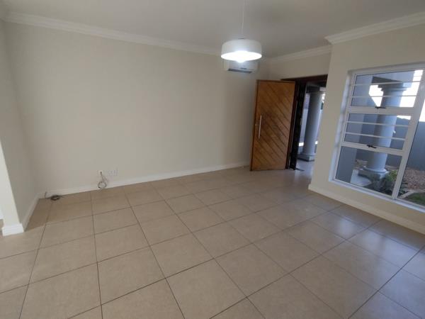 Open-plan lounge and dining area leading to an enclosed patio with built-in braai perfect for all-season entertaining