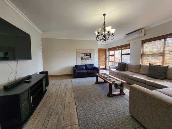 Located just a short drive from the beach, this beautiful home boasts breathtaking sea views and offers everything you could want for relaxed, family-friendly living.Ideal for larger families or those who love to entertain, the home features four spacious bedrooms, three well-appointed bathrooms, and a modern kitchen with sleek granite countertops. The open-plan living and dining area is both elegant and inviting, flowing effortlessly into an indoor braai areaperfect for cozy gatherings on cooler days.Step outside and youll find a private courtyard oasis complete with a Lapa, built-in braai, and sparkling swimming poolperfect for sunny afternoons spent with friends and family. The lush, well-established garden adds to the peaceful, resort-like atmosphere, with more than enough space for children to play or pets to roam freely.