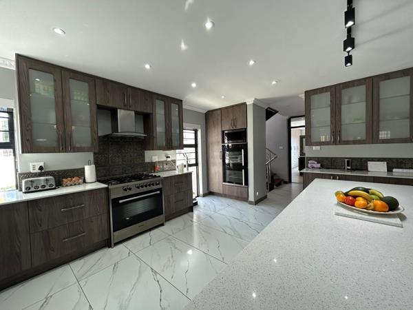Expansive open-plan living and dining spaces, effortlessly flowing through stacking doors to the braai area and pool terrace, creating a refined entertainment hub