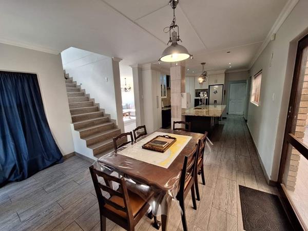 The property is well-suited for entertaining with a private lapa and sparkling swimming pool, all set within a low-maintenance garden.