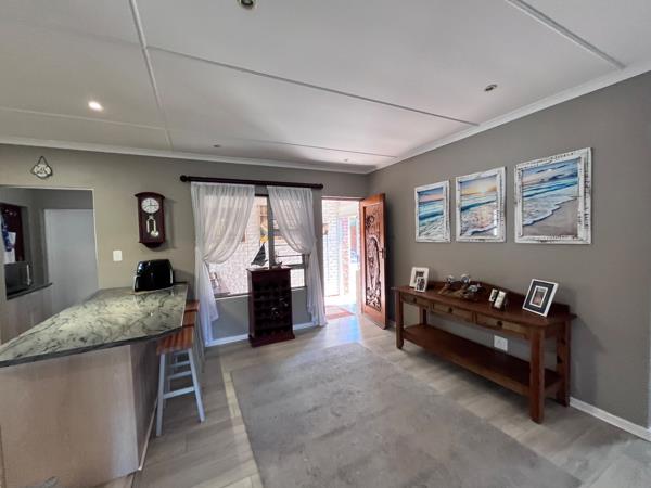 Another remarkable feature is the indoor braai area, which opens up to a stoep overlooking a low maintenance garden. This outdoor space is perfect for hosting barbecues or simply enjoying peaceful evenings in a lush environment. The presence of a double automated garage, additional undercover parking, and a water tank offers both convenience and sustainability, which are increasingly important considerations for modern homeowners.