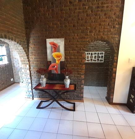 The lovely garden path leads to the front door which opens into the entrance hall. On the right is the dining room with a few steps up to the lounge. Off the passage is the large kitchen complete with breakfast nock and separate laundry.