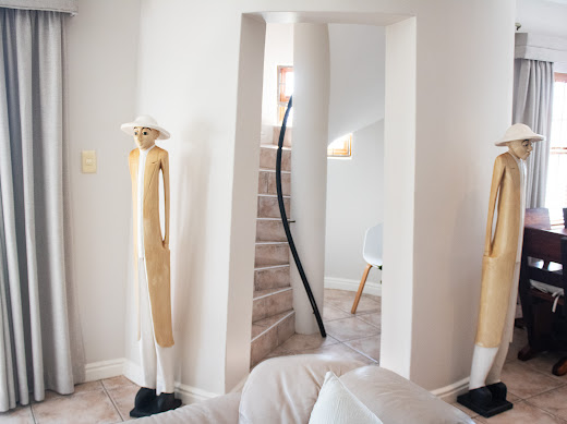 One bedroom is downstairs and the spiral staircase takes you to the other two upstairs. There are 2 bathrooms, one with shower, basin and loo and one full bathroom with shower, basin, loo and soaking tub. The open plan living areas create a welcome environment for modern living. This layout seamlessly flows from the living room, dining room and kitchen which creates a cohesive space that is perfect for relaxation, entertaining and everyday enjoyment.