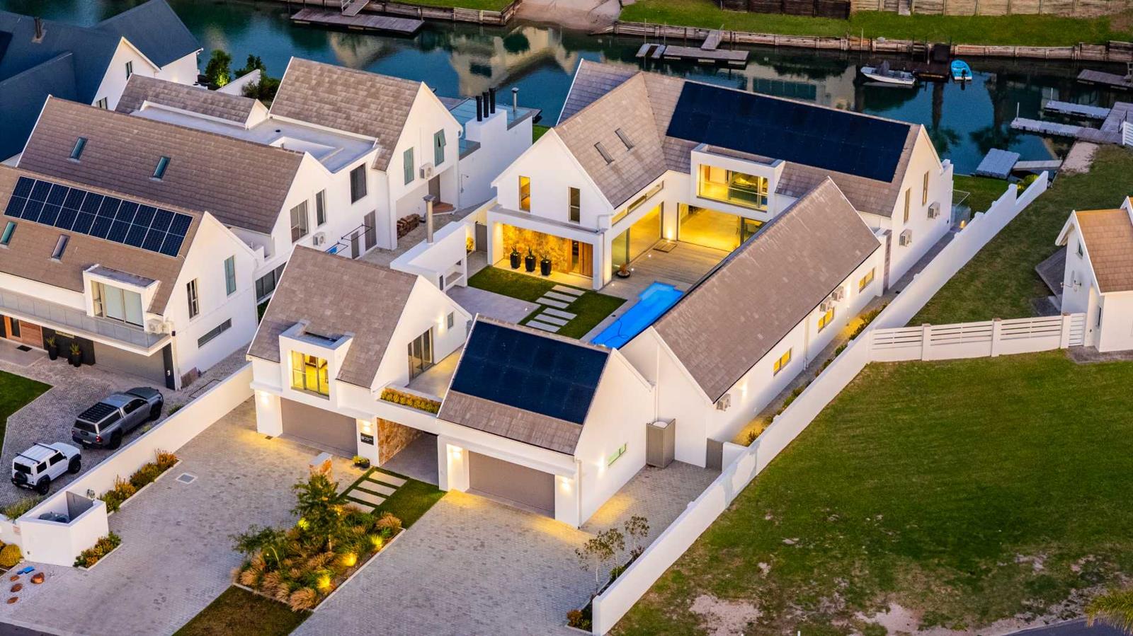Located on the tranquil canals of St Francis Bay, this exceptional property blends striking design with full off-grid functionality. Offering 6 en suite bedrooms, a separate flatlet, multiple entertainment areas, and seamless indoor-outdoor flow, it is a rare find for the modern coastal buyer.