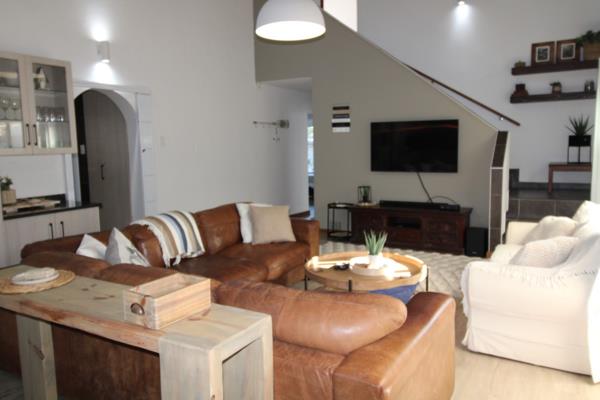 A welcoming sun deck leads to a sheltered and relaxed patio with an outdoor braai area, fitted with roll-down blinds to provide shelter from the elements perfect for all-weather entertaining.